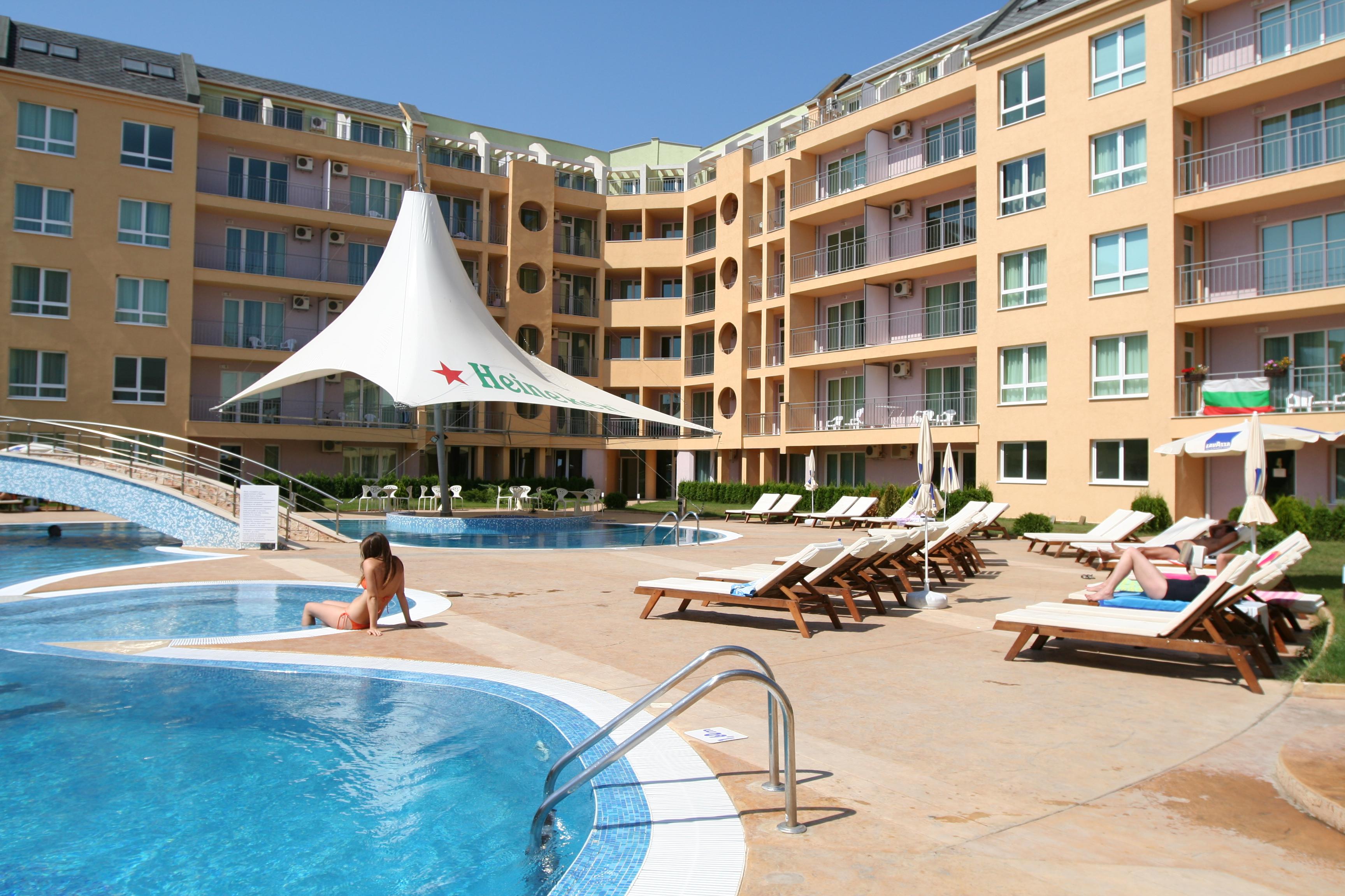 Lejligheder Polo ligger i den sydlige del af Sunny Beach i gåafstand fra den fantastiske sandstrand og ca. 1,5 km fra det livlige centrum. Indkvarteringen sker i pæne og rummelige lejligheder, hvor de største kan rumme op til 6 personer. Alle lejligheder er indrettet med balkon og tekøkken, hvor du selv kan tilberede lette retter. Polo har et dejligt poolområde med swimmingpool, børnepool og solterrasse, hvor du kan nyde solen og en drink fra poolbaren. Til børnene er her en lille legeplads. Her er en hyggelig atmosfære, og vi anbefaler Polo til både voksne, unge og børnefamilier, der gerne vil bo i en mere rolig del af Sunny Beach.