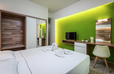 Hotel Olympia er et ægte byhotel og ligger i gåafstand fra centrum af Kos by. Det lille hotel er det ideelle udgangspunkt for at udforske den smukke ø. Vil du have tips og føle dig som en rigtig lokal på øen? De venlige ejere har den ægte philoxenia-følelse i deres hjerter, eller med andre ord, de er meget gæstfrie og er der altid for dig. De stilfulde hotelværelser og badeværelser, som blev renoverede for kort tid siden, tilbyder masser af komfort og en god nats søvn. Om morgenen kan du få en rolig start, og der venter dig en morgenmad med friskbrygget kaffe. Så snart du træder ud af døren, er du i byens centrum, og stranden er ikke langt væk. Gå derhen i ro og mag, bestil en drink på en hyggelig bar undervejs, og nyd solen og havet på en dejlig liggestol.