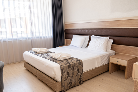 Hotel Caprea ligger direkte ved stranden i Marmaris – i den livlige bydel Siteler. Her kan du gå direkte ud i sandet eller finde en solseng med udsigt over havet. Strandpromenaden løber lige forbi hotellet og byder på masser af stemning og liv. Centrum af Marmaris ligger ca. 4 km væk og er nemt at komme til med dolmuş (minibus). Værelserne er lyse og funktionelt indrettet, med moderne faciliteter og friske farver. Du kan vælge mellem enkelt- eller dobbeltværelser. Nogle værelser har balkon eller terrasse – og flere med udsigt over havet eller de omkringliggende bjerge. Alle værelser har aircondition, minibar og et pænt badeværelse. Ved poolområdet er stemningen afslappet, og der er god plads til at slappe af. Til de mindste er der en separat børnepool. På stranden står liggestole og parasoller klar. I hotellets restaurant – med både inde- og udeterrasse – kan du nyde tyrkiske og internationale retter. Og til en drink er der både en bar og en hyggelig poolbar. Vil du ud at opleve noget? Gå en tur langs kysten, besøg et af de nærliggende vandlande eller tag dolmuşen ind til centrum. Hotel Caprea kombinerer ro ved havet med Marmaris’ livlige atmosfære – præcis det, du har brug for til en ubekymret solferie.