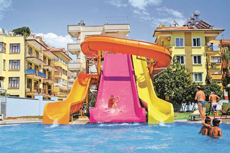 For en bekymringsfri all-inclusive-ferie i centrum af Alanya er Hotel Grand Zaman Garden den perfekte indkvartering. Hotellet har to swimmingpools, hvoraf den ene har vandrutsjebaner. Der er også masser af sportsfaciliteter og et wellnesscenter til maksimal afslapning. Med en dejlig sandstrand og en hyggelig bymidte rundt om hjørnet har du alt, hvad du behøver for at få en dejlig ferie!