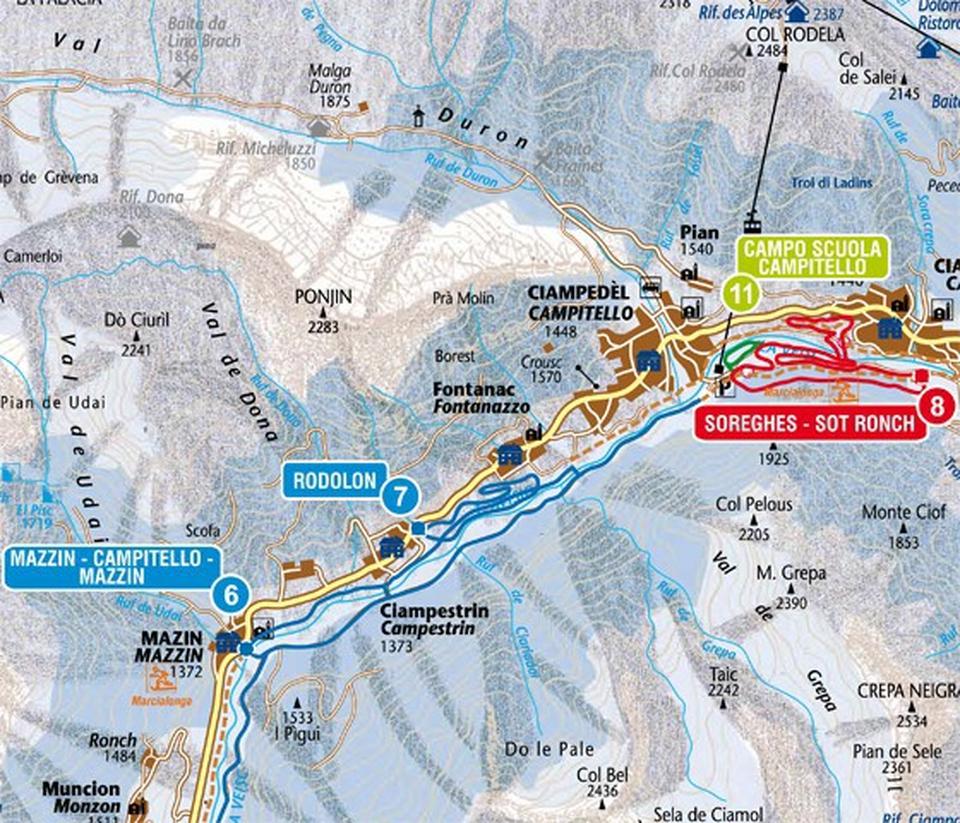 Hvis du, som øvet skiløber, vil have en oplevelse ud over det sædvanlige, så kan det anbefales at afprøve den næsten lodrette "Alberto Tomba" pist. Denne pist er på top 10-listen over de smukkeste pister i verden. Booker du hotel eller lejlighed i Canazei eller Campitello, er liftkortet Val di Fassa - Carezza inkluderet.