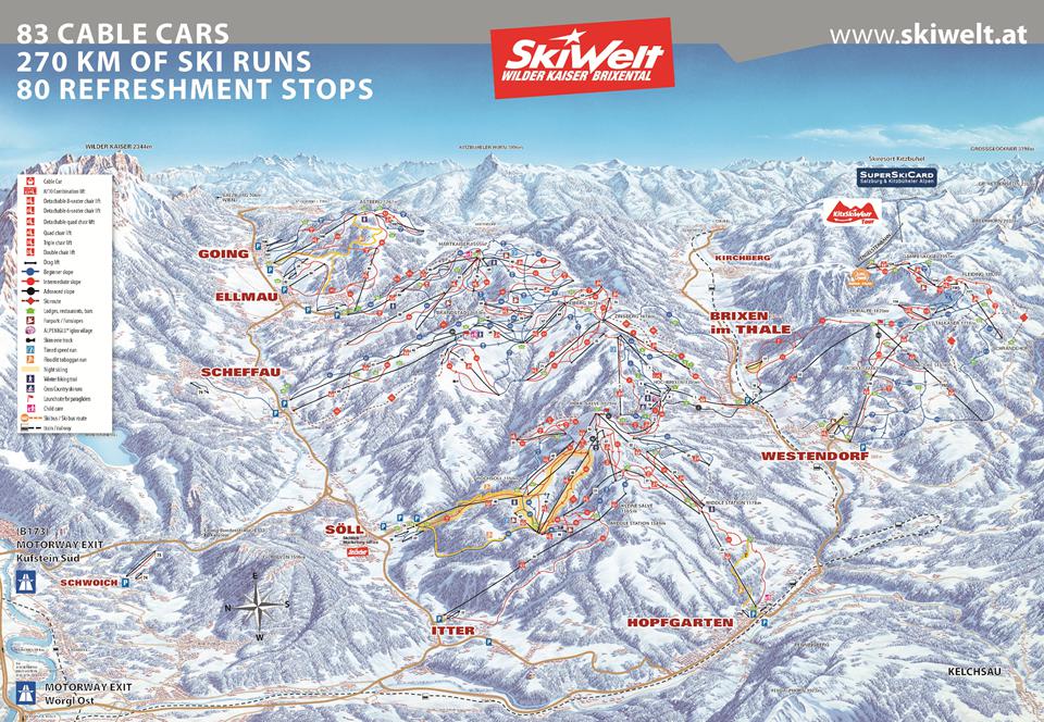 I Itter har du adgang til skiområdet, Wilder Kaiser-Brixental, som består af cirka 270 kilometer pister. Området er således ét af de største sammenkoblede områder i Østrig. Det populære skiområde dækker over byen Ellmau, Going, Scheffau, Söll, Hopfgarten, Brixen im Thale og Westendorf cirka 279 kilometer pister. Her kan du stå på ski i højde fra 620 til cirka 2000 meter over havets overflade. Udover de mange kilometer pister, så finder du her også cirka 150 kilometer langsrendspister og tre funparks. Skiområdets omfangsrige og moderne liftsystem gør det let at komme rundt i området uden de lange liftkøer, og du vil derfor kunne bruge mere tid på at udforske området i stedet. Der er f.eks. en kabinelift med plads til 8 personer, som på kort tid transporterer dig til Westendorfer Choralpe. Desuden behøver du ikke at bekymre dig om sneforholdene i dette skiområde. De moderne snekanoner i området sørger for, at pisterne altid er dækket med et godt lag af sne!